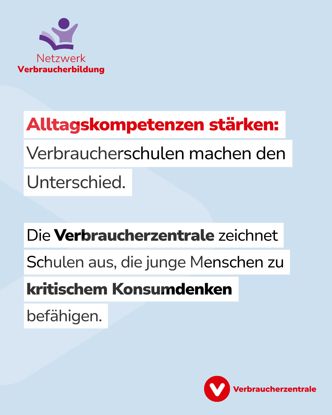 Auf dem Bild ist zu lesen, dass Verbraucherbildung die Alltagskompetenzen stärkt.